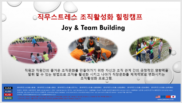 2. 한국직무스트레스 힐링센터에서는 즐거운 직장과 건강한 직장생활을 위해서 직무스트레스 조직활성화 힐링 캠프 교육 프로그램을 제안합니다.