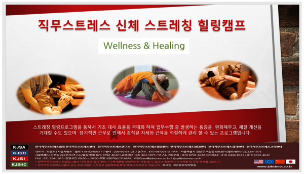 2. 한국직무스트레스 힐링센터에서는 즐거운 직장과 건강한 직장생활을 위해서 직무스트레스 신체 스트레칭 힐링 캠프 교육 프로그램을 제안합니다.
